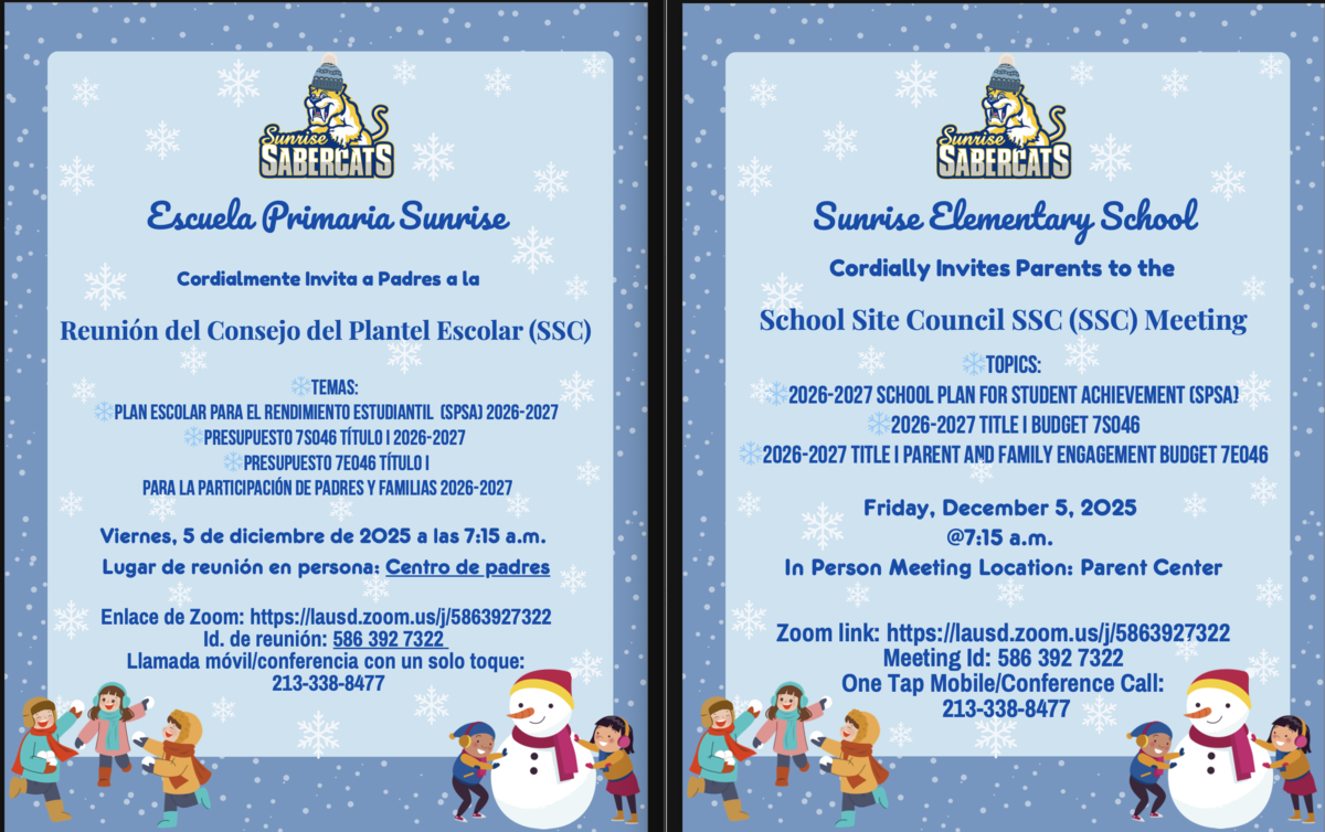 School Site Council (SSC) Meeting Friday December 5, 2025 at 7:15am Attached Files SSC Meeting Agenda 12-5-25 SPSA and Budget 26-27.pdf